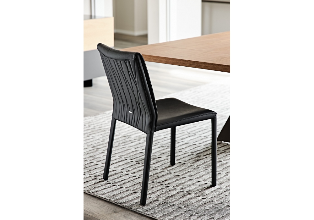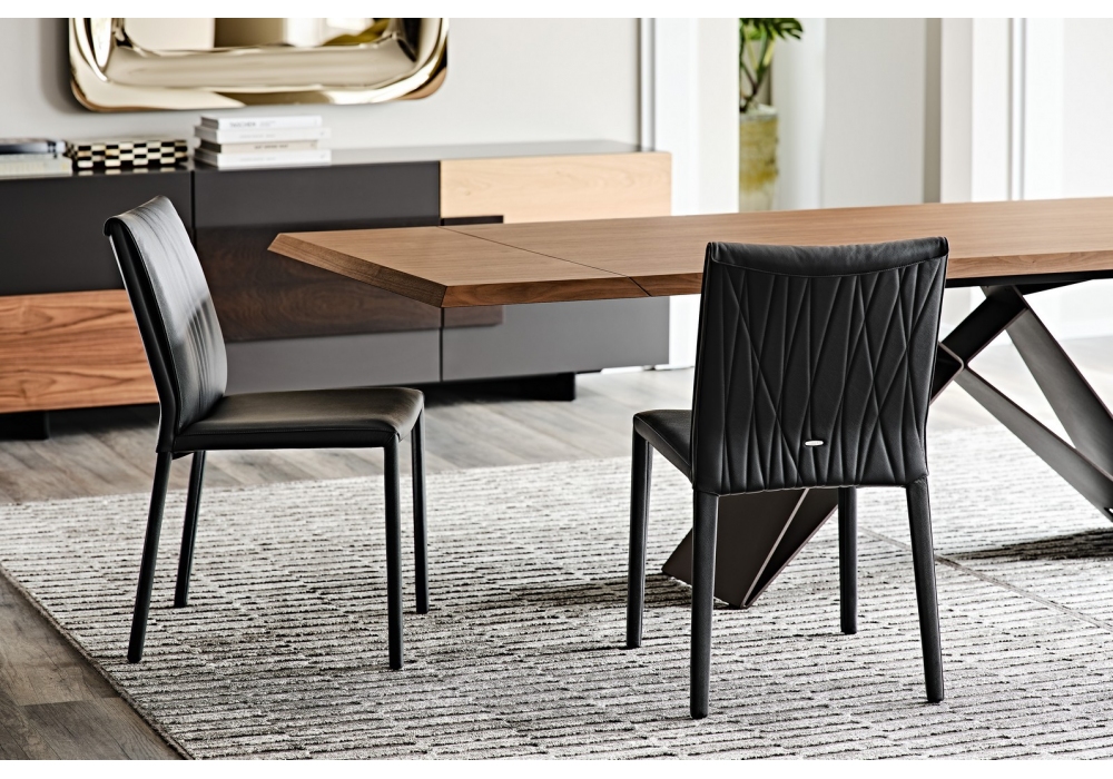 Italia Couture von Paolo Cattelan für Cattelan Italia entworfen, ist ein Stuhl mit gesteppter Rückenlehne, erhältlich mit oder ohne Armlehnen. Struktur aus Metall. Bezug aus Stoff, Kunstleder, synthetic nubuck, micro nubuck oder Softleder.