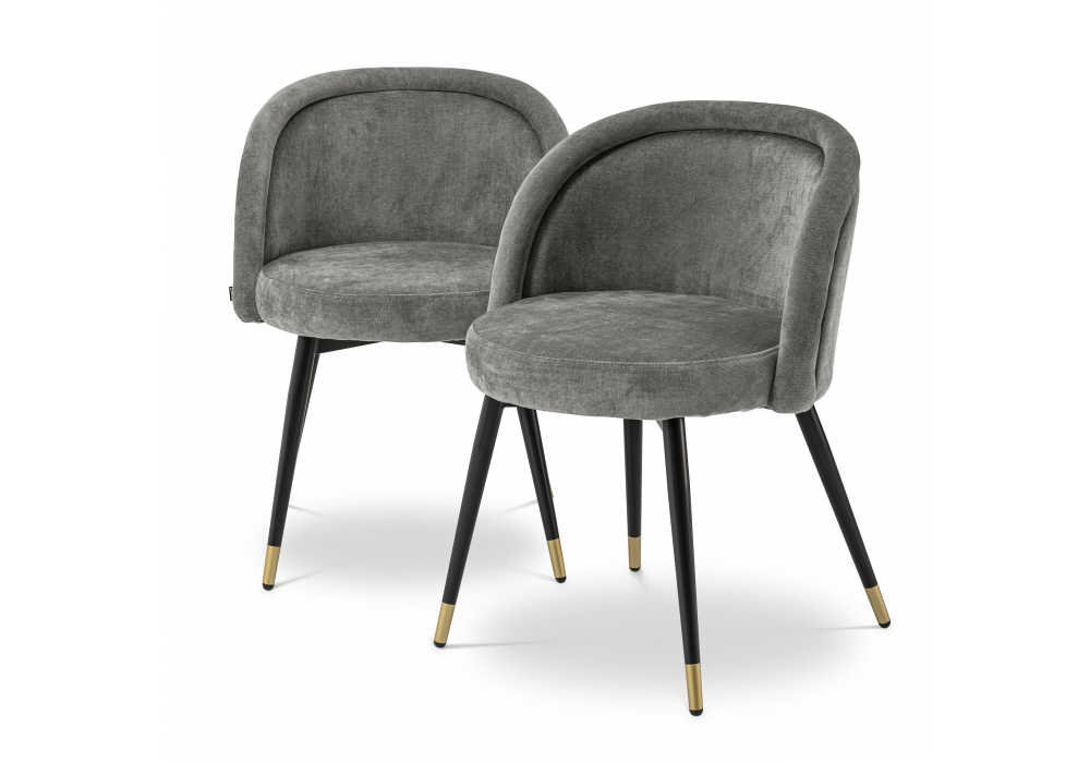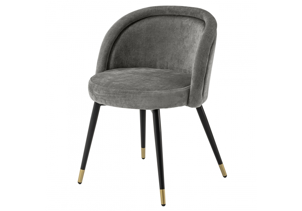 Chloé von Eichholtz entworfen, ist ein Stuhl mit Stoffbezug Rückenlehne und Sitz, schwarze Beine mit Messingkappen.