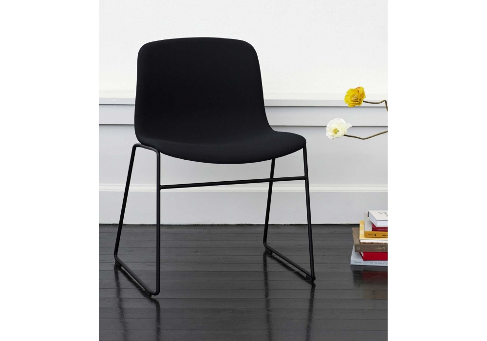 About a Chair AAC 09 von Hee Welling & Hay für Hay entworfen, ist ein Stuhl mit vollständig gepolsterter Schale aus spritzgegossenem Polypropylen ohne Armlehnen und Kufengestell aus massivem pulverbeschichtetem Stahl. Verügbar in verschiedenen Polsterungen.