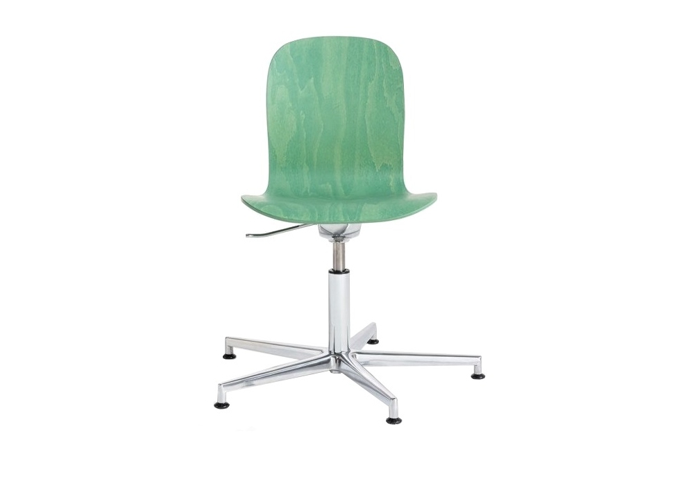 Tate Color von Jasper Morrison für Cappellini entworfen, ist ein Stuhl mit anilingefärbter Buchensperrholzschale und 5-Speichen-Metallgestell mit Füßen oder Rädern. Verfügbar in mehreren Ausführungen.