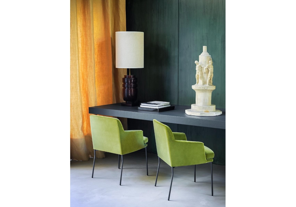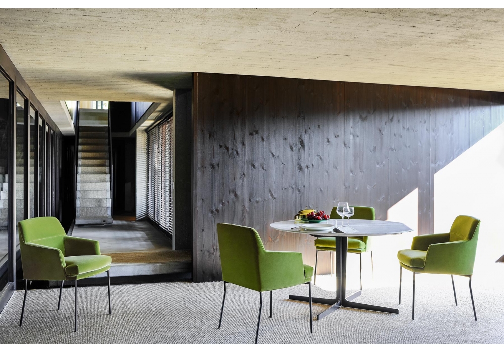 Montevideo von Claesson Koivisto Rune für Tacchini entworfen, ist ein Stuhl mit abnehmbarem Bezug und Polsterung aus Polyurethanschaum unterschiedlicher Dichte, Gestell aus lackiertem Metall. Erhältlich in verschiedenen Ausführungen.