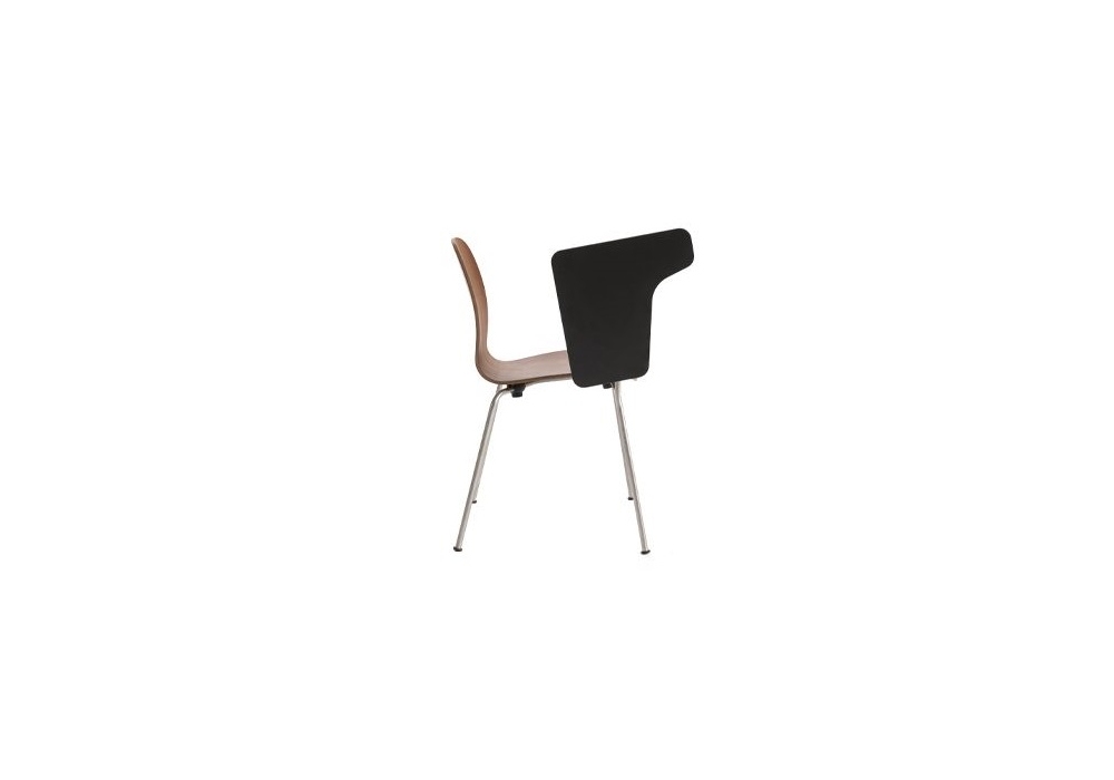 Tate Wood von Jasper Morrison für Cappellini entworfen, ist ein Stuhl mit verstellbarem Tablett aus schwarzem Laminat mit Schale aus Buchensperrholz furniert in Eiche oder Mahagoni und Metallgestell mit 4 Beinen aus Edelstahl. Verfügbar in mehreren Ausführungen.