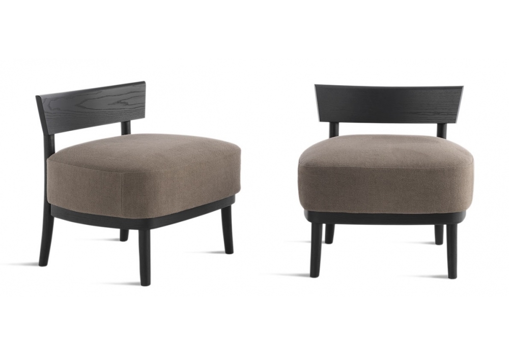 Cherish Lounge von Ludovica & Roberto Palomba für Casamania & Horm entworfen, ist ein Stuhl mit schwarzer massiver Eschenstruktur. Sitz mit Polyurethanschaum gepolstert und mit Leder, Kunstleder oder Stoff bezogen.