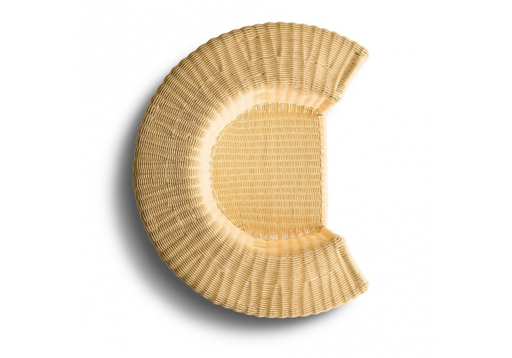 Charlotte von Mario Botta für Casamania & Horm entworfen, ist ein Stuhl mit weiß lackierter Metallstruktur, die mit handgewebtem, natürlichem unlackiertem Rattan überzogen ist.