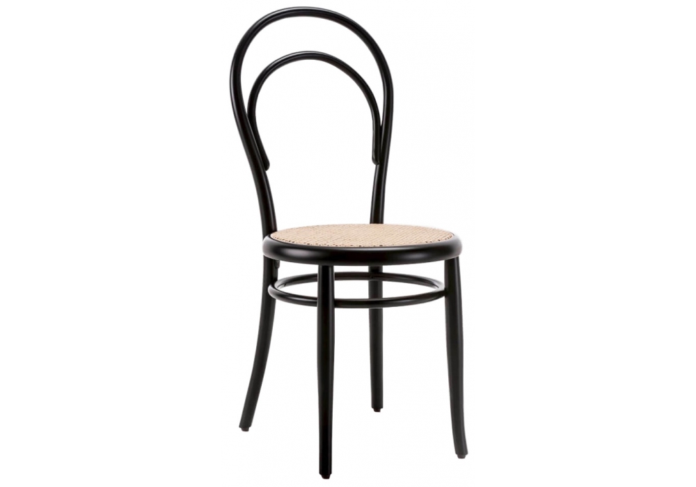 N. 14 von Michael Thonet für Gebrüder Thonet Vienna entworfen, ist ein Stuhl aus gebogener Buche in verschiedenen Ausführungen. Sitz in Multilayer, perforiertem Multilayer oder Wiener Stroh erhältlich.
