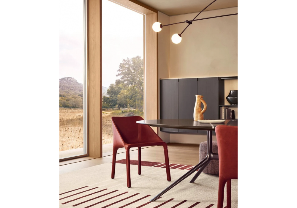 Manta von Rodrigo Torres für Poliform entworfen, ist ein Stuhl mit einer Struktur aus flexiblem, einkomponentigem Polyurethan und einem Bezug aus Stoff, Leder oder Pixel Tecnocover.