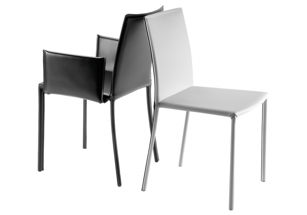 Twiggy von Gebrüder Thonet Vienna entworfen, ist ein Stuhl mit Stahlstruktur. Gepolsterter Sitz und Rücken mit Lederpolsterung. Erhältlich mit oder ohne Armlehnen.
