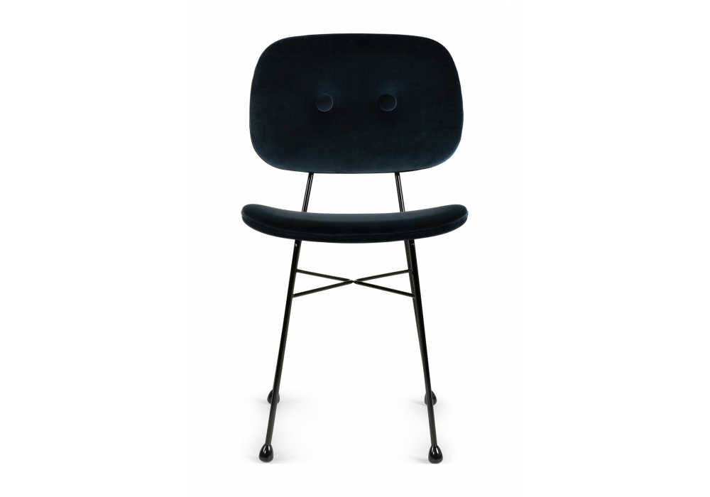 The Golden Chair Black von Nika Zupanc für Moooi entworfen, ist ein Stuhl mit Gestell aus schwarz lackiertem Stahl und Bezug aus schwarzem Kunstleder. Auch der Stuhl kann mit einer Auswahl an Stoffen bezogen werden, um zu verschiedenen Innenräumen zu passen.