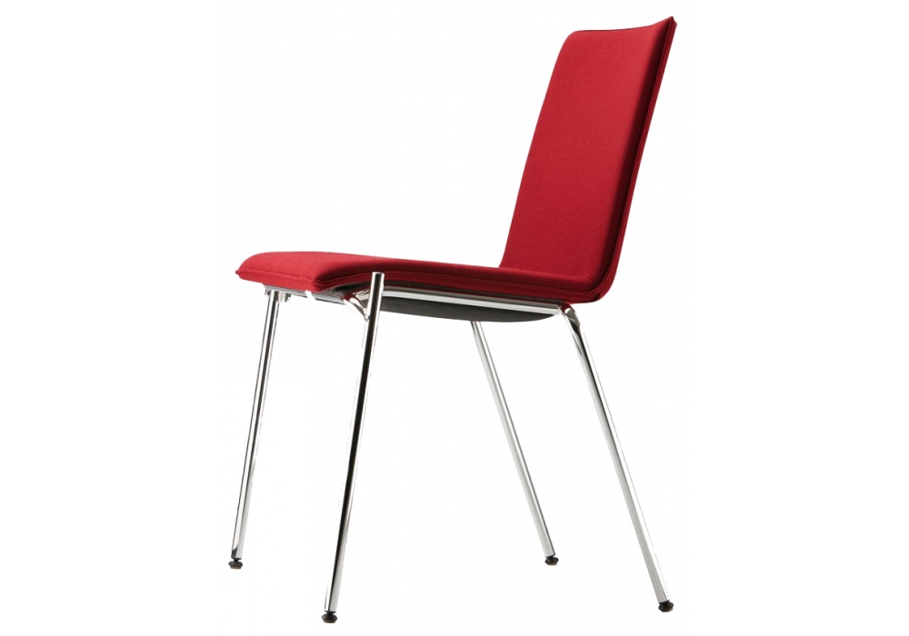 S 162 PV / PVF von Delphin Design für Thonet entworfen, ist ein stapelbarer Stuhl mit Gestell aus verchromtem Stahlrohr. Gepolsterter Sitz und Rückenlehne mit Stoff-, Leder- oder Fellpolsterung. Der Stuhl ist auch mit oder ohne Armlehne erhältlich.