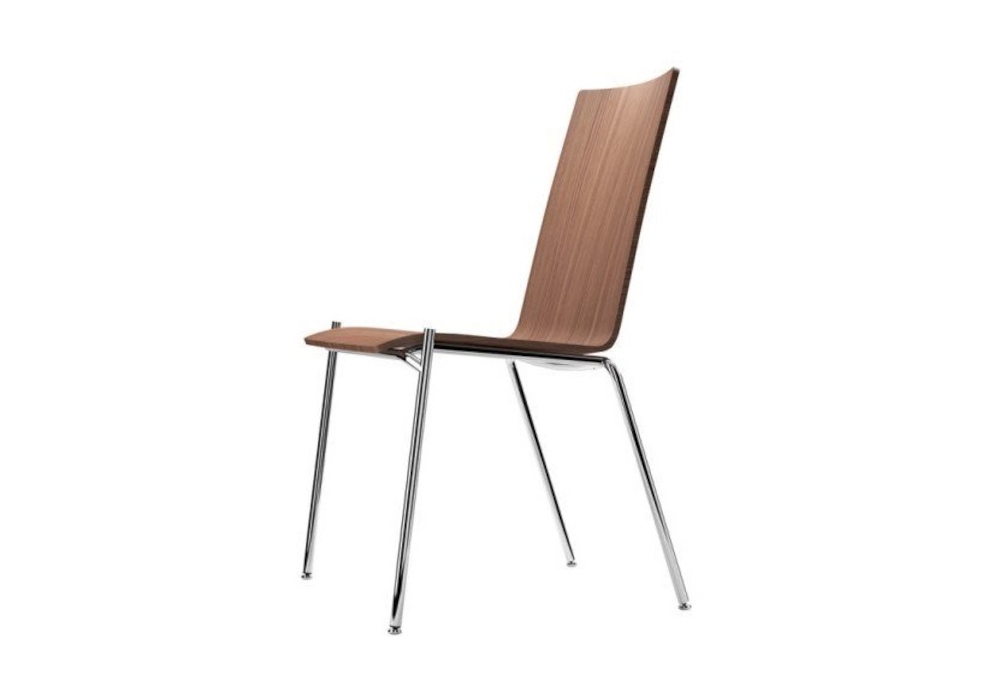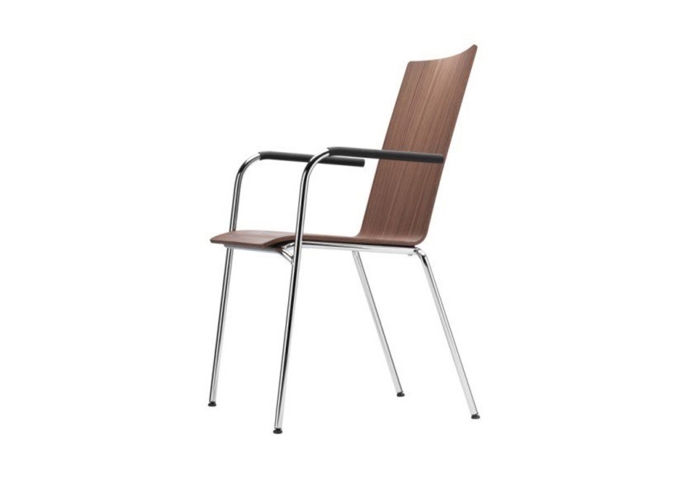 S 164 von Delphin Design für Thonet entworfen, ist ein stapelbarer Stuhl mit Gestell aus verchromtem Stahlrohr. Sitzschale und Rücken aus Buchenformsperrholz, in verschiedenen Ausführungen. Der Stuhl ist auch mit oder ohne Armlehne erhältlich.