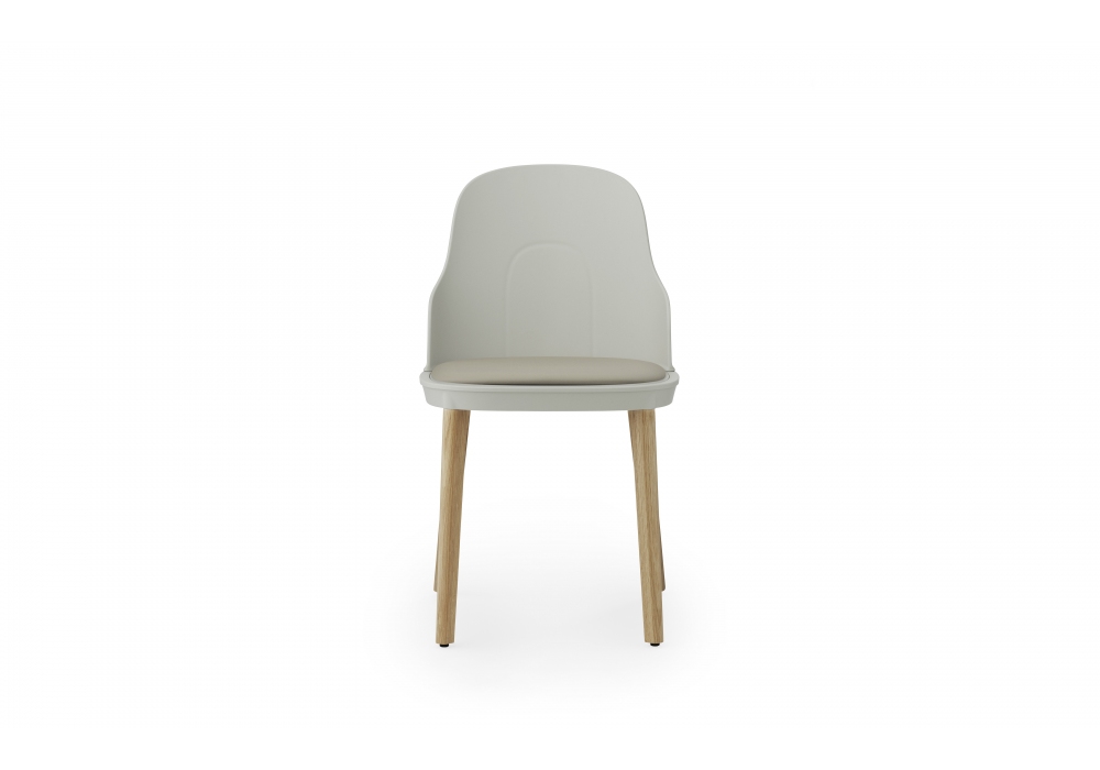 Allez, entworfen von Simon Legald für Normann Copenhagen, ist ein Stuhl, strukturiert aus Polypropylen oder durch die Kombination von Eiche und Polypropylen in den Oberflächen; warmes Grau, Grau, Weiß, Schwarz oder Parkgrün. Sitz und Rückenlehne sind ein einziger Körper aus Polypropylen, mit Polsterung aus Stoff oder Leder in der gleichen Farbe wie die Struktur.