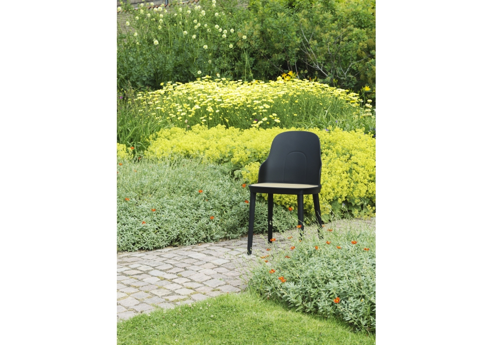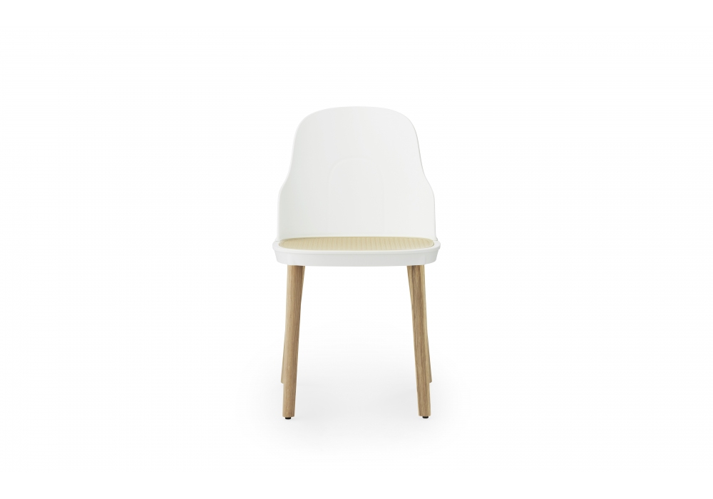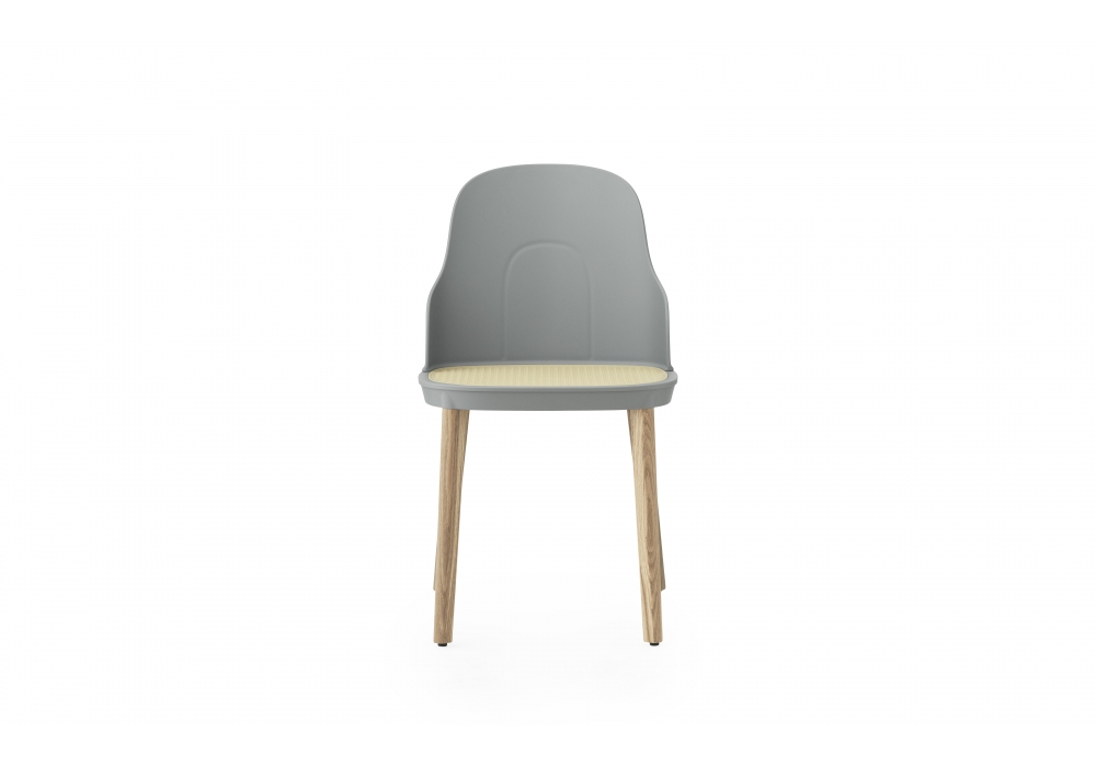 Allez, entworfen von Simon Legald für Normann Copenhagen, ist ein Stuhl, strukturiert aus Polypropylen in Kombination mit Eiche, in den Ausführungen; warmes Grau, Grau, Weiß, Schwarz oder Parkgrün. Allez ist in zwei verschiedenen Versionen erhältlich, mit Sitz aus Kunststoff in der gleichen Ausführung wie die Struktur oder mit Sitz aus elfenbeinfarbenem geformtem Korbgeflecht.