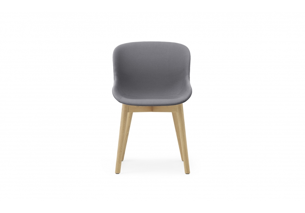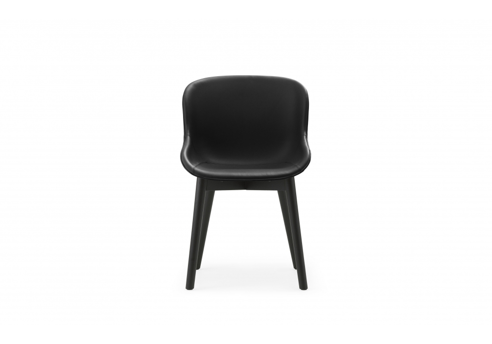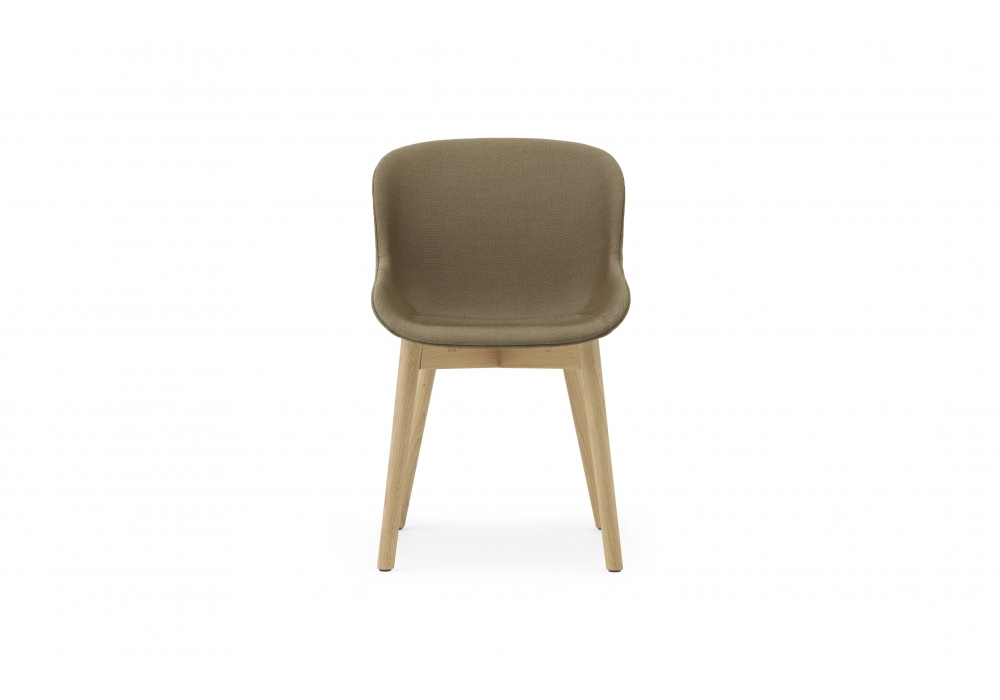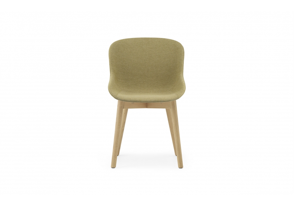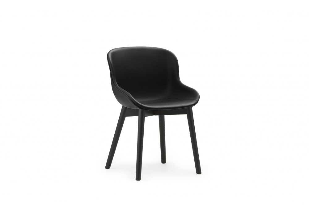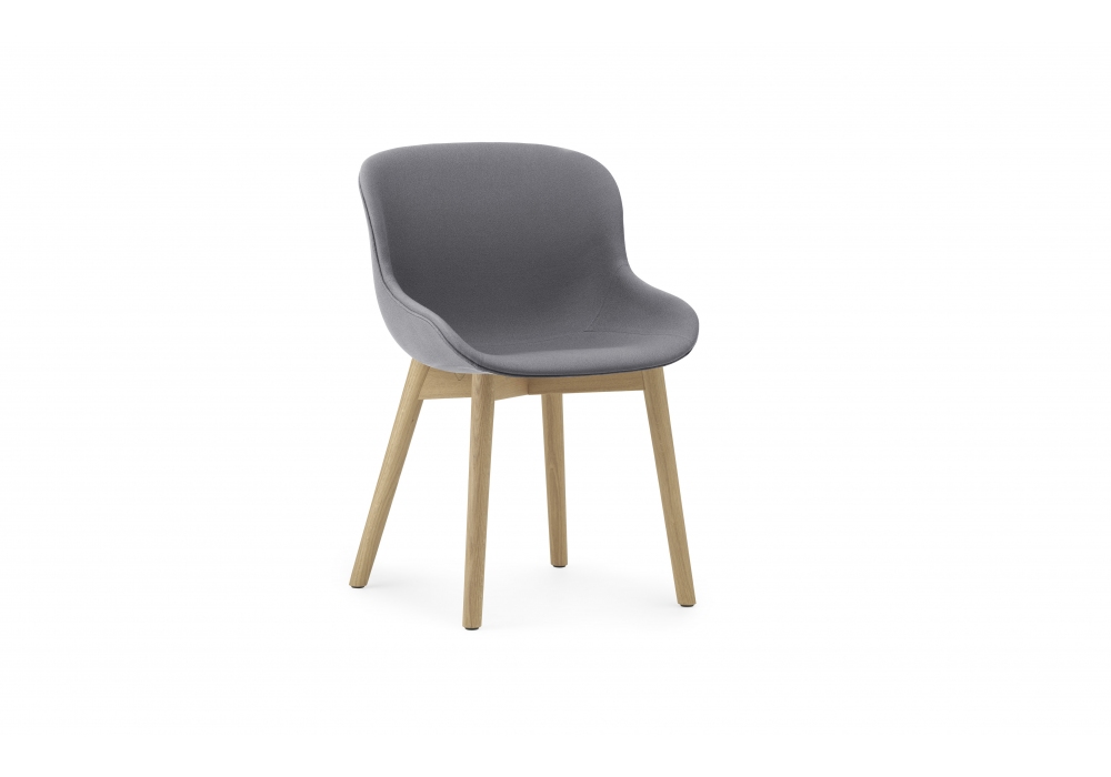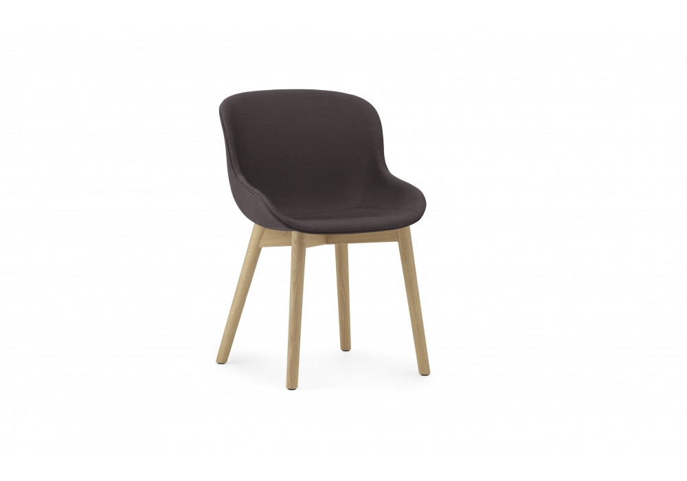 Hyg, entworfen von Simon Legald für Normann Copenhagen, ist ein Stuhl mit Schale, die vollständig mit Leder oder Stoff in verschiedenen Ausführungen bezogen ist. Die tragende Struktur ist aus Eiche in den Farben Natur oder Schwarz.