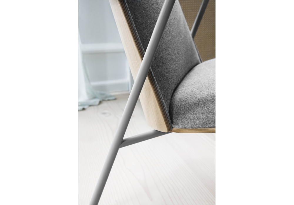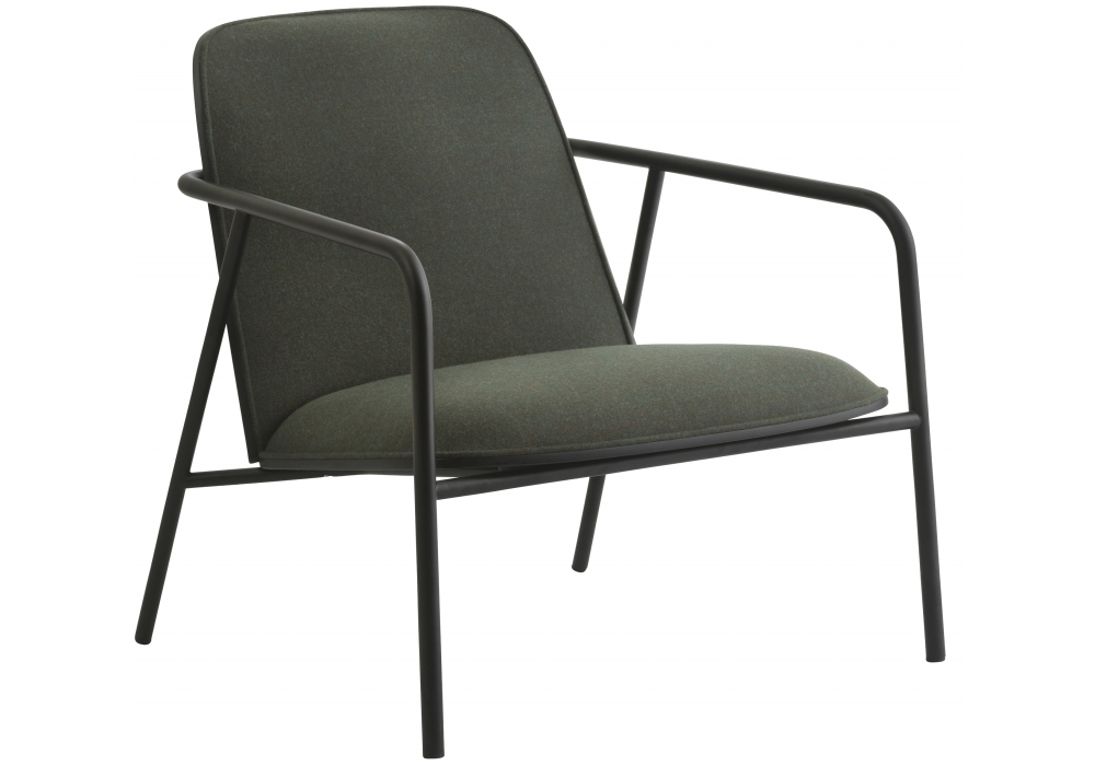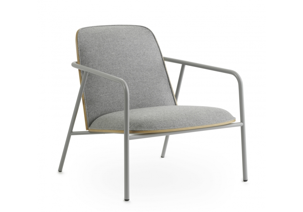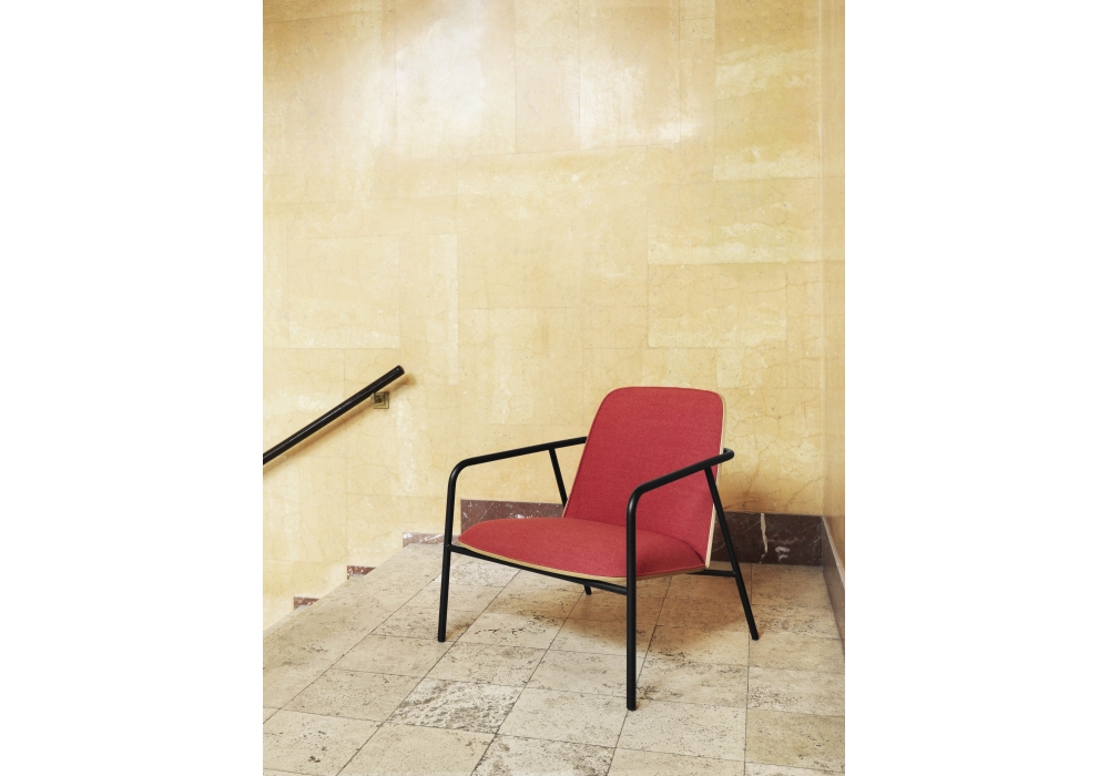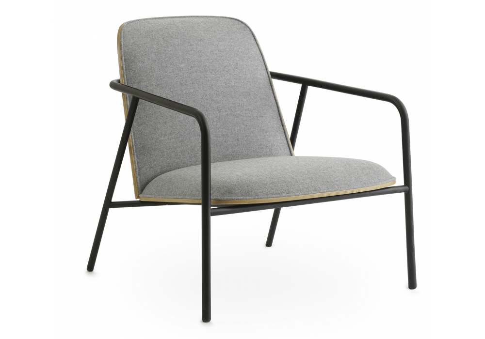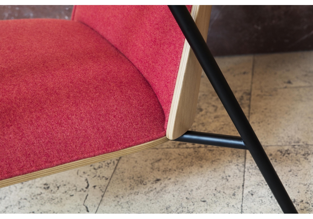 Pad, entworfen von Simon Legald für Normann Copenhagen, ist ein Sitz mit röhrenförmiger Struktur aus schwarz oder grau pulverbeschichtetem Stahl. Sitz und Rückenlehne sind aus Holz, in Schwarz oder Naturholzausführung, gepolstert mit PU-Schaum, bezogen mit Stoff oder Leder in verschiedenen Farben.