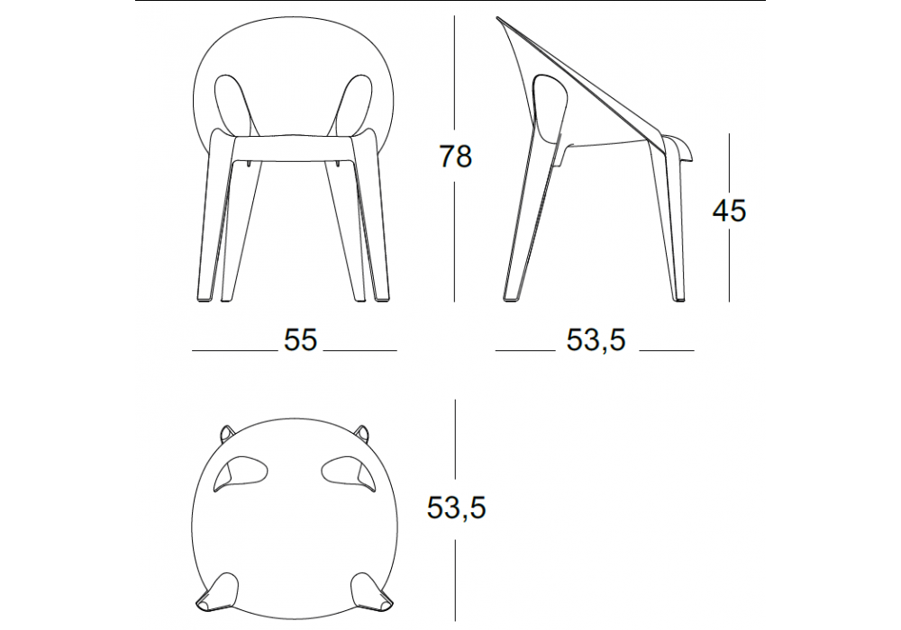 Bell Chair von Konstantin Grcic für Magis entworfen, ist ein Set aus 4 Stühlen aus Polypropylen und Fiberglas. Verfügbar in verschiedenen Ausführungen.