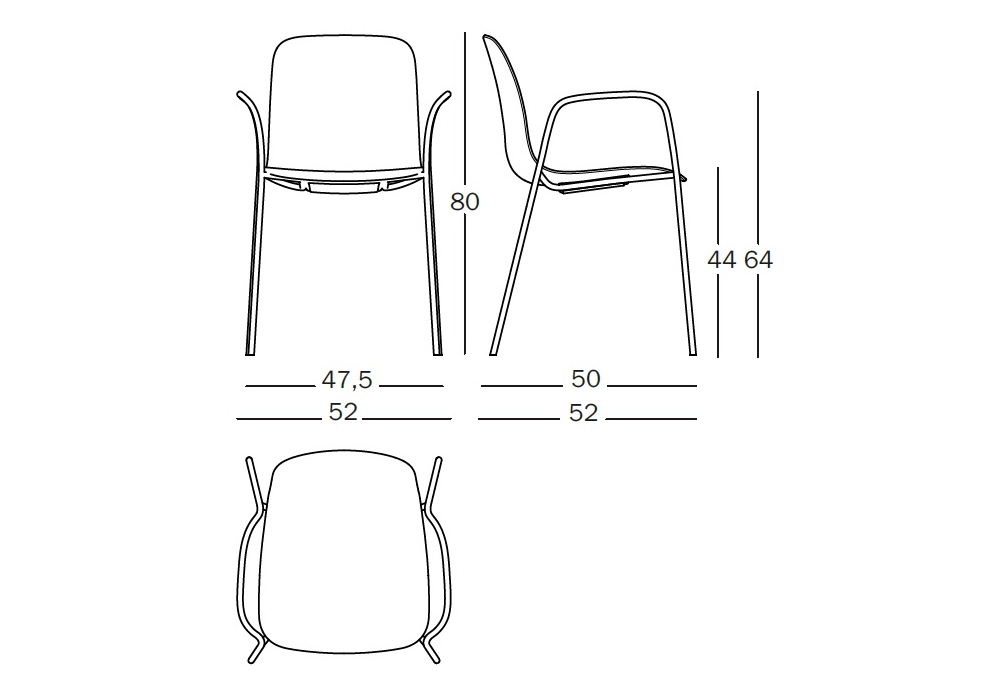 Substance von Naoto Fukasawa für Magis entworfen, ist ein stapelbarer Stuhl mit Armlehnen, Gestell aus polyesterlackiertem Stahlrohr. Sitz aus Polypropylen. Verfügbar in verschiedenen Ausführungen.