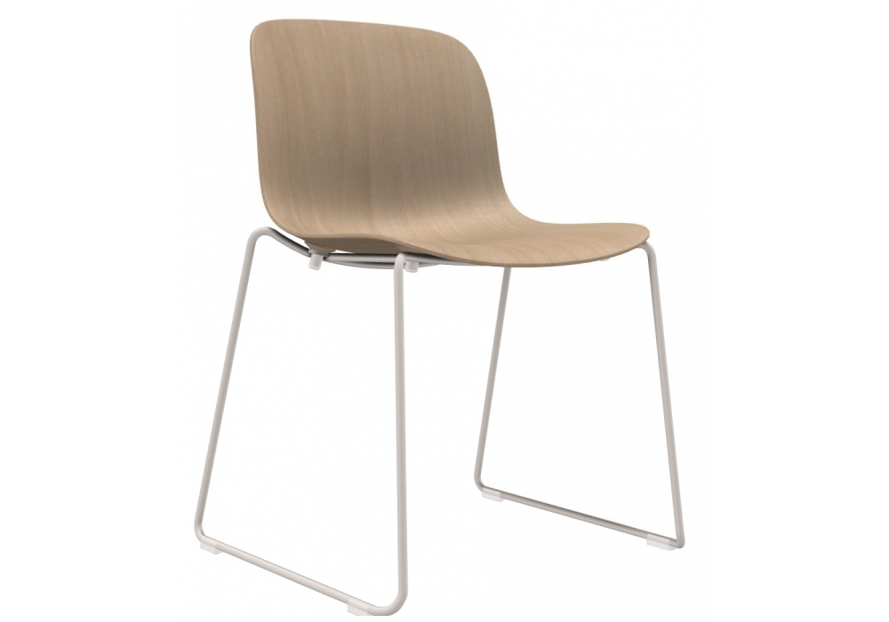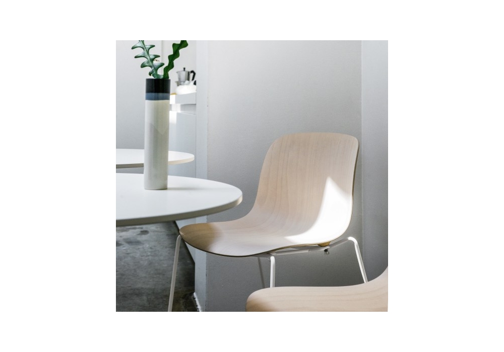 Troy Beech von Marcel Wanders für Magis entworfen, ist ein Stuhl mit Sitz aus natürlichem oder schwarzem Buchensperrholz, Gestell aus verchromtem oder lackiertem Stahlrohr. Erhältlich in verschiedenen Ausführungen.