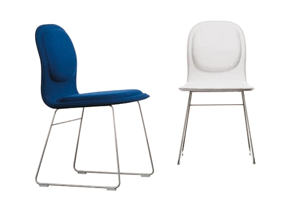 Hi Pad von Jasper Morrison für Cappellini entworfen, ist ein Stuhl mit Holzschale mit Stoff- oder Lederbezug und Stahlgestell. Verfügbar in mehreren Ausführungen.