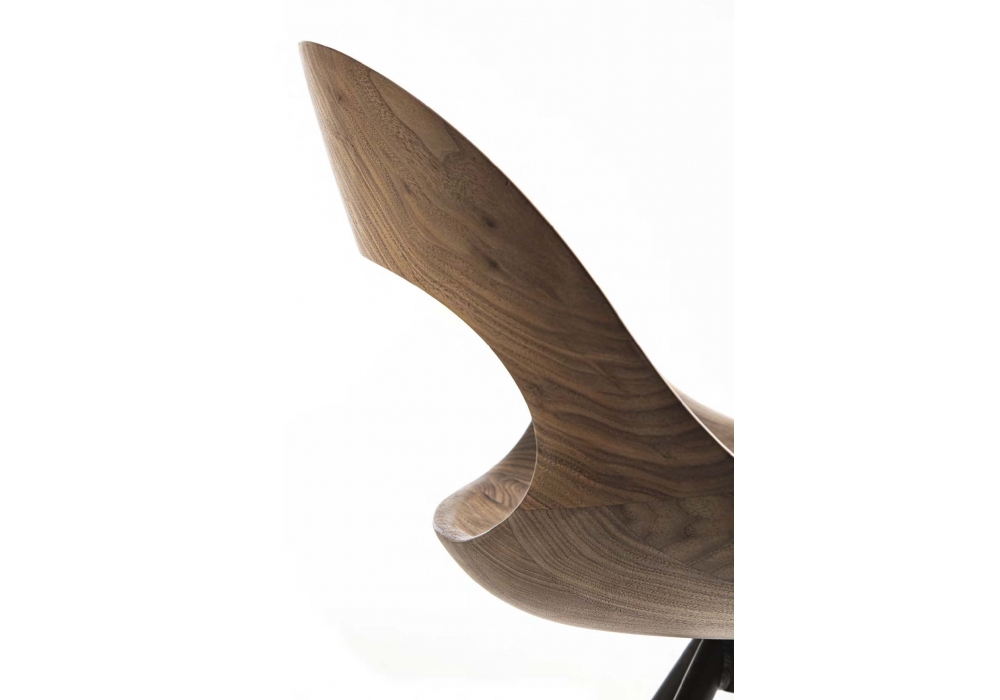 Naima von Martin Ballendat für Riva 1920 entworfen, ist ein Stuhl mit einem Sitz aus Massivholz in Kontinuität zwischen Rückenlehne und Armlehnen, auch in einer drehbaren Version erhältlich.