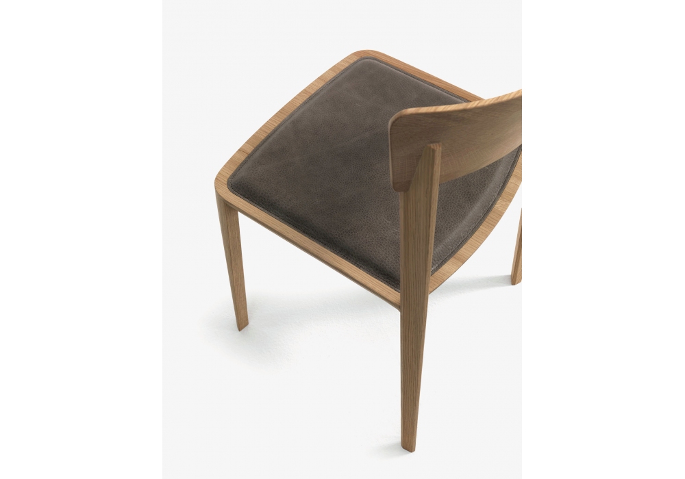 Mia Leather von C.R. & S. Riva 1920 entworfen, ist ein Stuhl aus Massivholz, mit gepolstertem Sitzkissen, mit Leder bezogen und in die Struktur eingebettet.