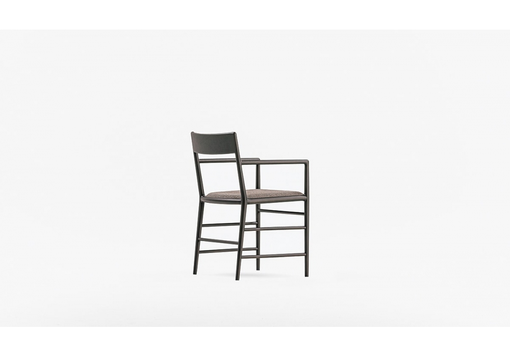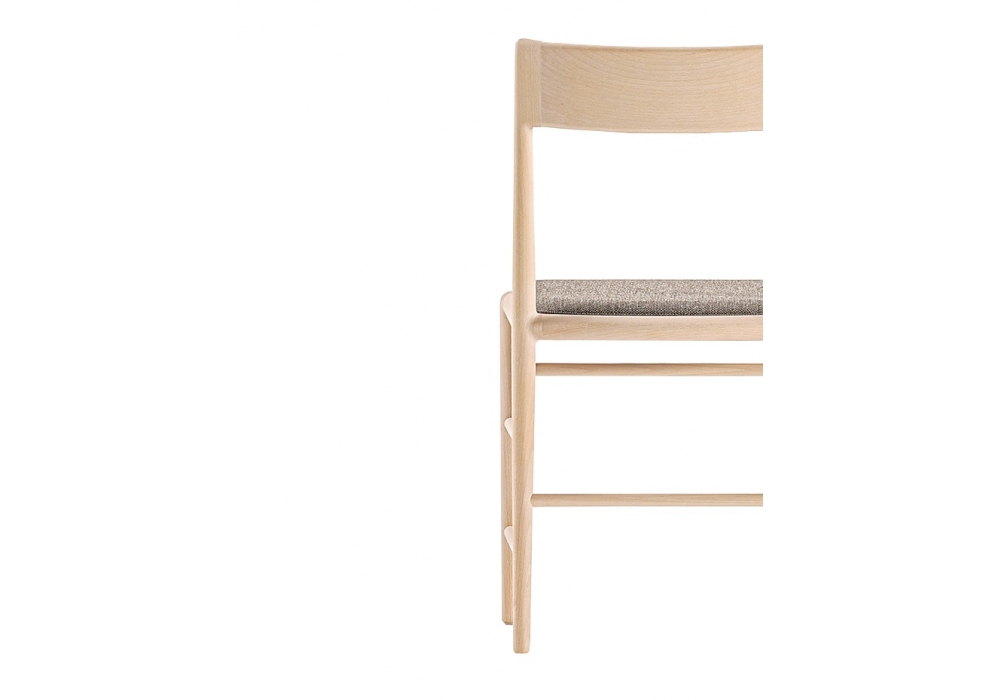 Der Sensitive Back Chair, entworfen von Time & Style ēdition für DePadova, ist ein Stuhl mit Struktur aus massivem Buchenholz, schnee- oder anthrazit gebeizt, und festem Bezug aus grauem Stoff oder dunkelbraunem Leder. Erhältlich in der Version mit oder ohne Armlehnen.