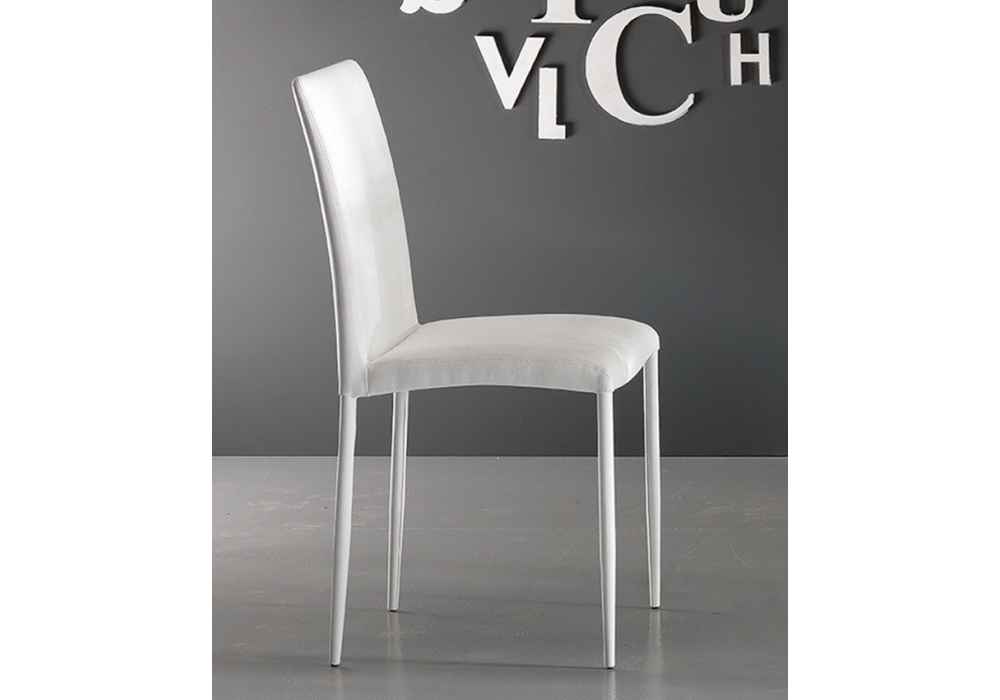 Nina Flex von Riflessi entworfen, ist ein Stuhl mit Stahlrahmen, gepolstertem Sitz und Rückenlehne. Mit Stoff oder Leder bezogen und mit Doppelnähten nachgearbeitet. Beine in mehreren Ausführungen lackiert. Gepolsterte Beine auf Anfrage.