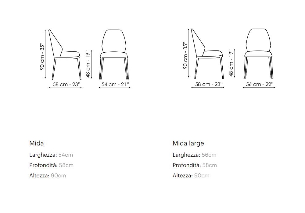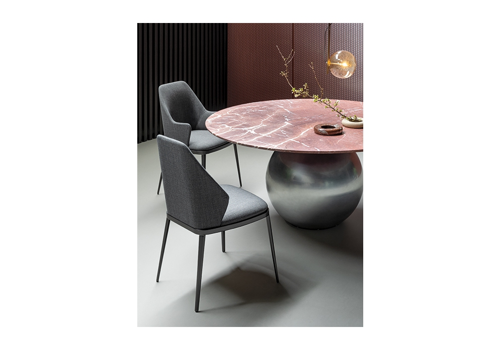 Mida von Gino Carollo für Bonaldo entworfen, ist ein Stuhl mit Struktur aus Stahl und Sperrholz, Polsterung aus nicht verformbarem hochdichtem Gummi und nicht abnehmbarem Bezug, verfügbar in verschiedenen Materialien und Ausführungen. Die Beine sind aus Metall, in verschiedenen Kategorien und Farben.