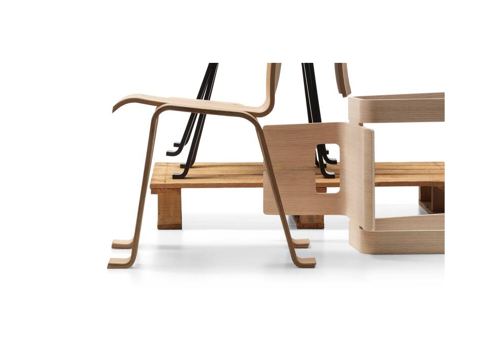 517 Ombra Tokyo von Charlotte Perriand für Cassina entworfen, ist ein Stuhl mit einer Struktur aus gebogenem Buchensperrholz mit Eichenfurnier.