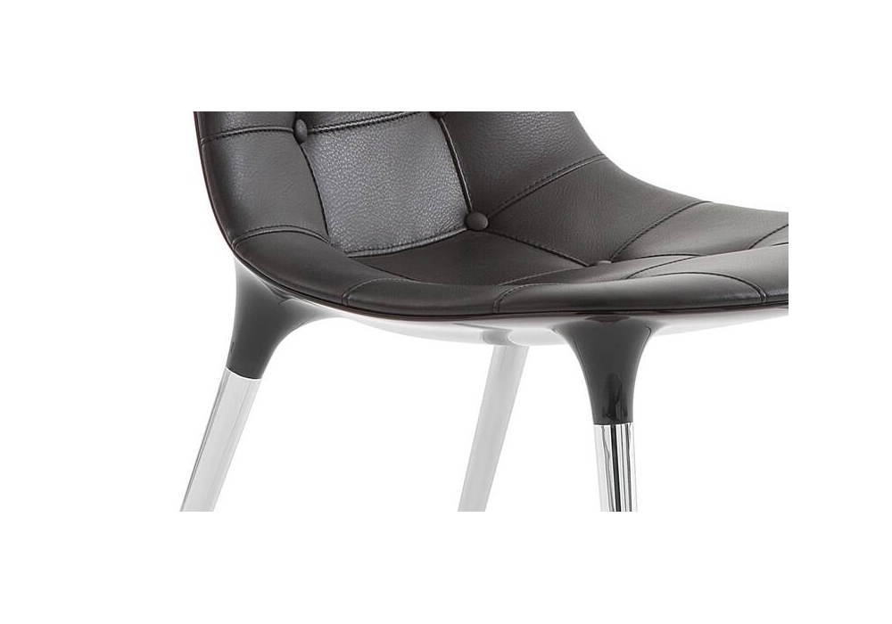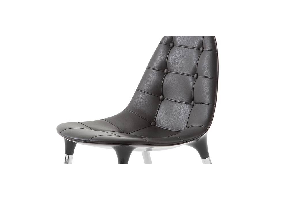 245 Caprice von Philippe Starck für Cassina entworfen, ist ein Stuhl mit Beinen aus verchromtem oder lackiertem Stahl. Die Schale ist innen mit gestepptem Leder oder Stoff und außen mit Nylon gepolstert.