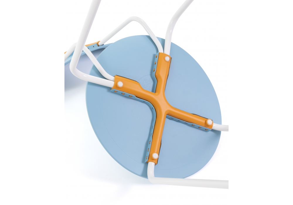 Mariolina von Enzo Mari entworfen, ist ein stapelbarer Stuhl mit verchromter oder lackierter Stahlstruktur, Sitz und Rückenlehne aus Polypropylen. Erhältlich in verschiedenen Ausführungen.