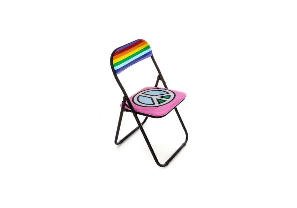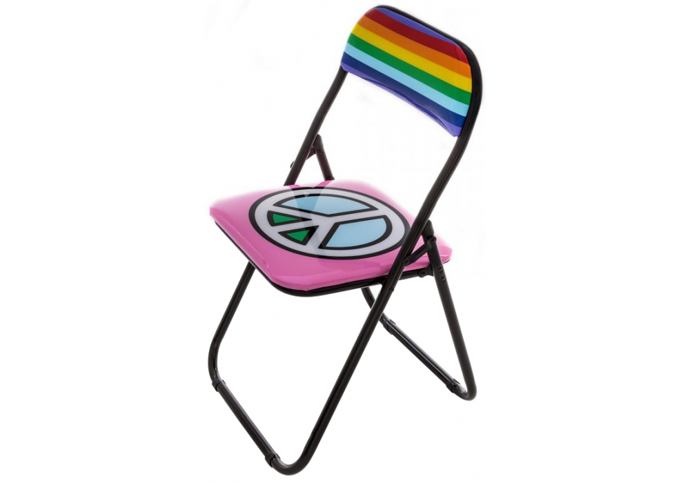 Peace von Studio Job für Seletti entworfen, ist ein Klappstuhl mit Metallstruktur und gepolstertem PVC-Sitz und Rückenlehne.