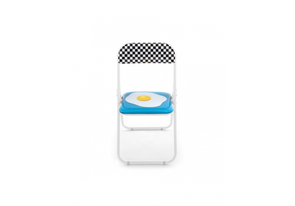 Egg von Studio Job für Seletti entworfen, ist ein Klappstuhl mit Metallstruktur und gepolstertem Sitz und Rückenlehne mit PVC-Bezug.