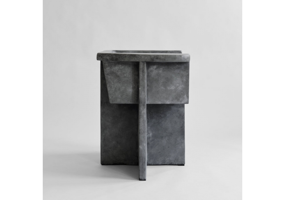 Brutus von Kristian Sofus Hansen & Tommy Hyldahl für 101 Copenhagen entworfen, ist ein Stuhl aus Zementfaser in verschiedenen Ausführungen. Erhältlich mit oder ohne Kissen.