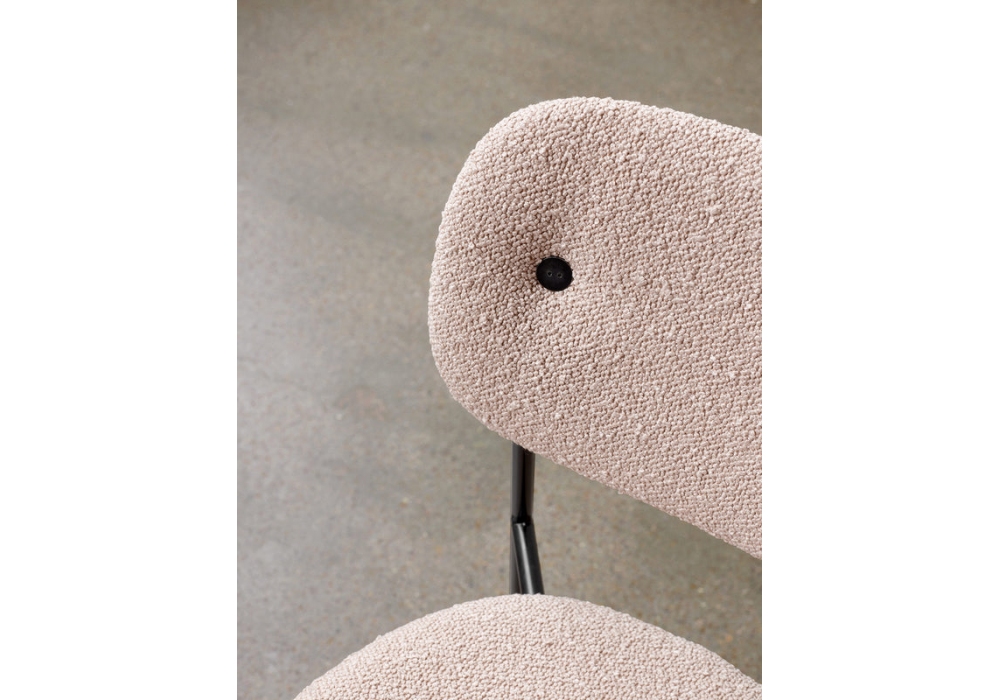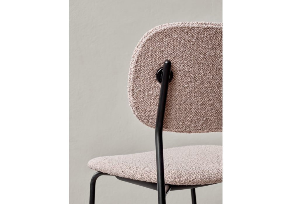 Co Fully von Norm Architects & Els Van Hoorebeeck für Audo Copenhagen entworfen, ist ein Stuhl mit gepolstertem Sitz und Rückenlehne, bezogen mit Stoff oder Leder. Beine aus schwarz pulverbeschichtetem oder verchromtem Stahlrohr.