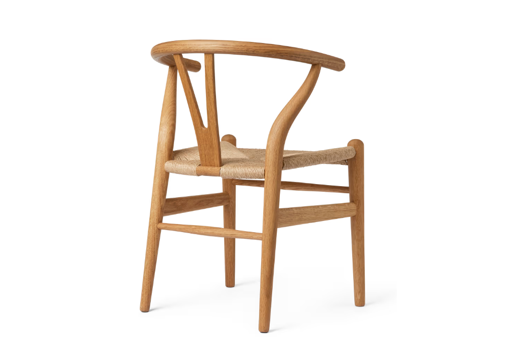 CH24 Child von Hans J. Wegner und Ilse Crawford für Carl Hansen & Søn entworfen, ist ein Kinderstuhl mit einem Gestell aus massivem Eichenholz und Öl. Sitz aus natürlichem Papierkordel. Es ist möglich, ein Sitzkissen aus schwarzem Leder Loke 7150 hinzuzufügen.