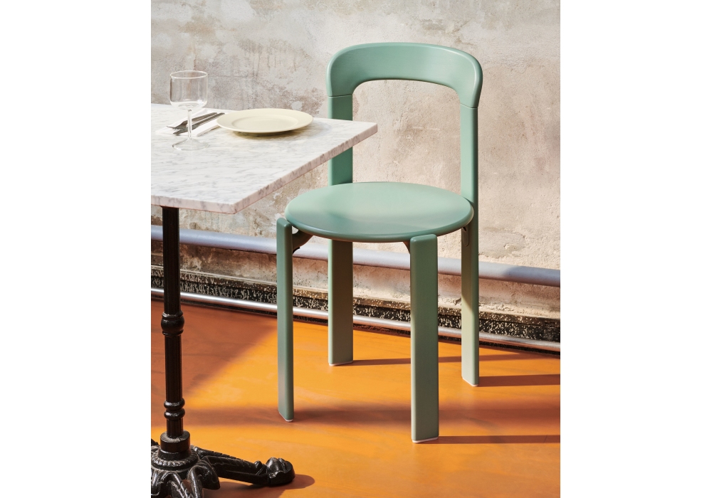 Rey von Bruno Rey & Hay für Hay entworfen, ist ein Stuhl aus Buchenholz. Es können bis zu 4 Stühle gestapelt werden. Verfügbar in verschiedenen Ausführungen.