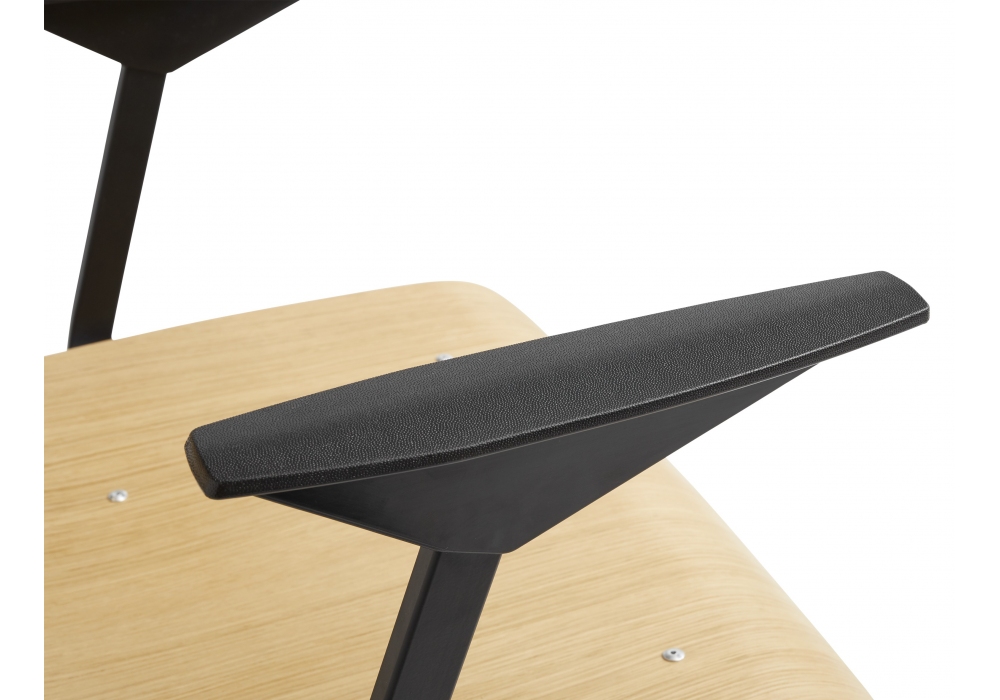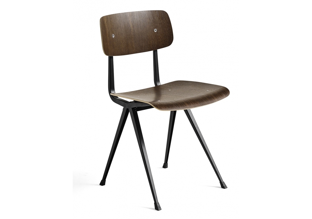 Resultvon Friso Kramer & Wim Rietveld für Hay entworfen, ist ein Stuhl mit Sitz und Rückenlehne aus Sperrholz mit Eichenfurnier und Basis aus schwarz pulverbeschichtetem, gebogenem Stahlblech. Verfügbar in verschiedenen Ausführungen.