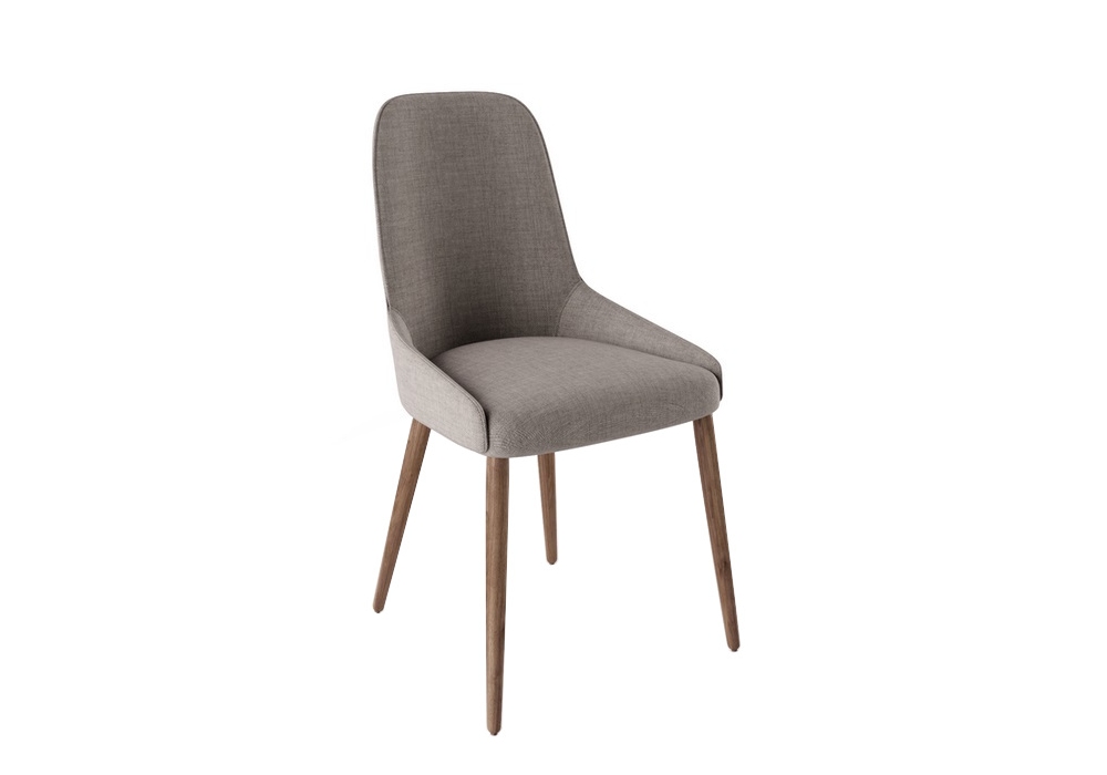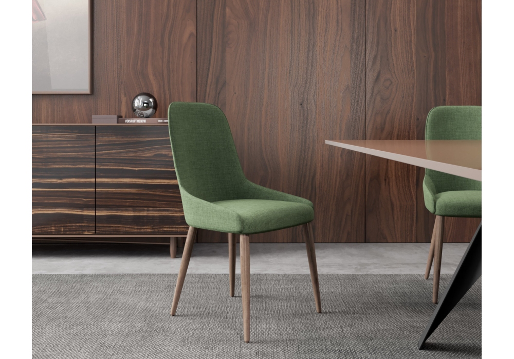 Soft produziert und signiert von Gual Design, ist ein Stuhl mit Struktur aus Eschenholz mit walnussfarbenem Polyurethanlack und Sitz- und Rückenbasis aus MDF, bezogen mit hochdichtem Schaumstoff und Stoff. Verfügbar in verschiedenen Ausführungen.