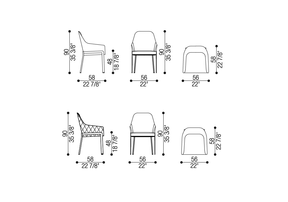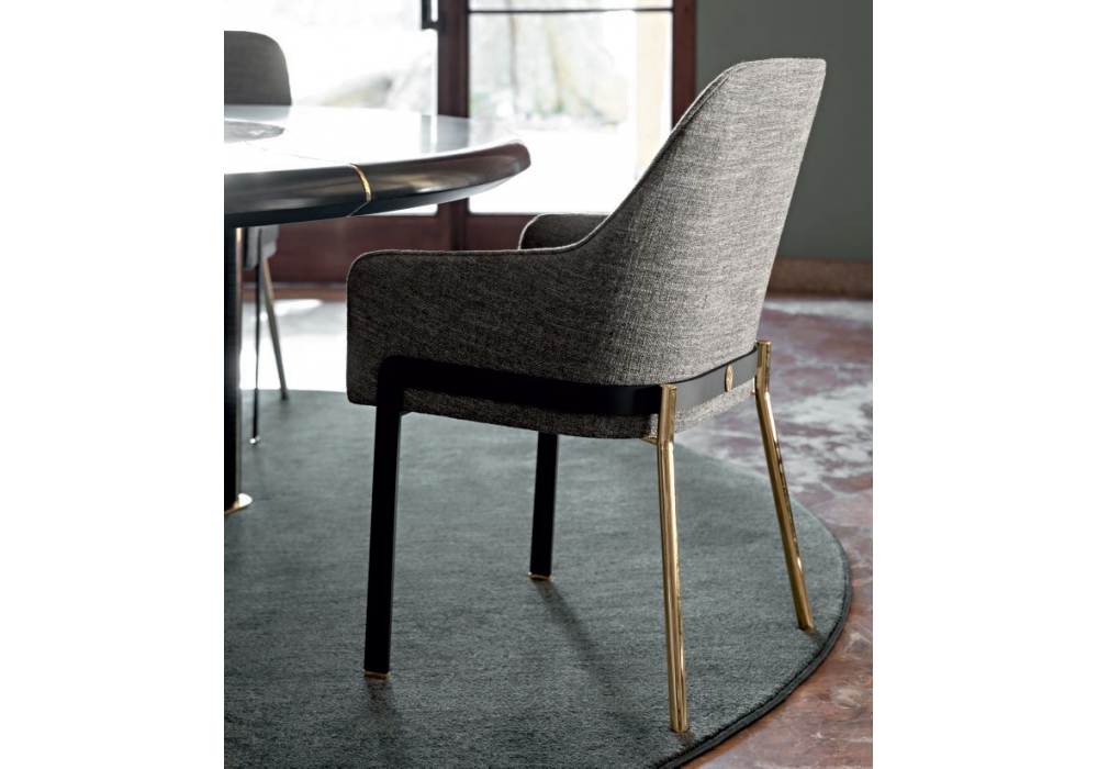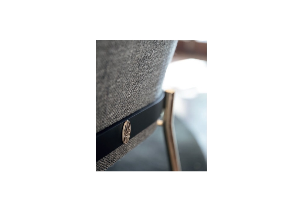 Stacy von Castello Lagravinese Studio für Opera Contemporary entworfen, ist ein Stuhl mit einer gebogenen Sperrholzstruktur mit Metallbeinen. Nicht abnehmbare Bezug aus Stoff oder Leder.