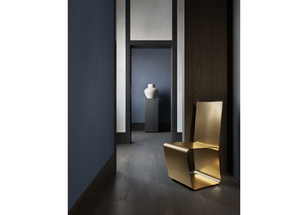 Kia von Giuseppe Viganò für Emmemobili entworfen, ist ein Stuhl aus geformtem Massivholz. Rückenlehne und Sitz komplett aus Stoff oder Leder mit innenliegender Schaumgummiauflage. Erhältlich in verschiedenen Ausführungen.