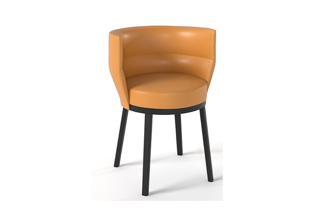 Sena von Christophe Pillet für Punt entworfen, ist ein Stuhl mit Struktur aus Nussbaum- oder Eichenfurnier und gebogener Rückenlehne aus Buchensperrholz, bezogen mit Stoff oder Leder in verschiedenen Ausführungen.