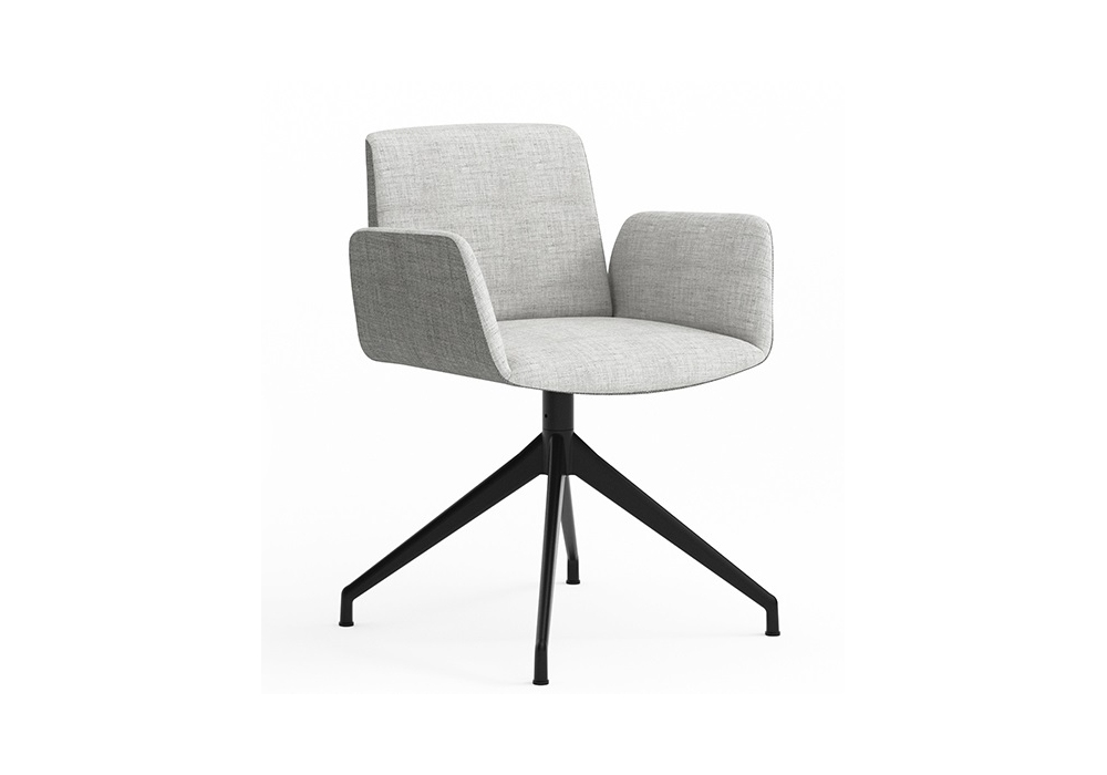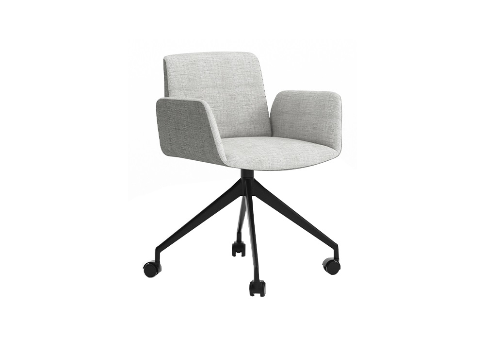Hug von Manel Molina für Punt entworfen, ist ein Gepolsterter Stuhl mit Stoff- oder Lederbezug und Struktur aus lackiertem Metall. Verfügbar in der Version mit oder ohne Räder.