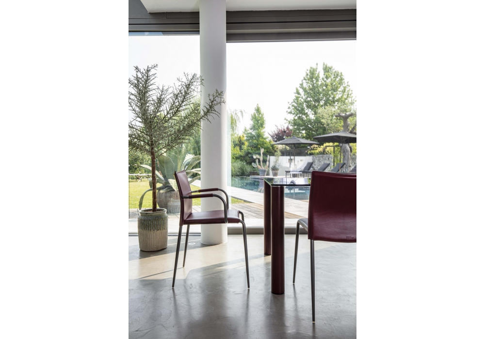 Gazzella von Tom Kelley für Enrico Pellizzoni entworfen, ist ein Stuhl mit Metallstruktur und konischen Beinen, verfügbar in verschiedenen Ausführungen. Sitz und Rücken in verschiedenen Materialien und Farben gepolstert. Basis aus Blech mit schwarzem technischem Stoff bezogen. Auch in der Version mit gepolsterten Armlehnen erhältlich.