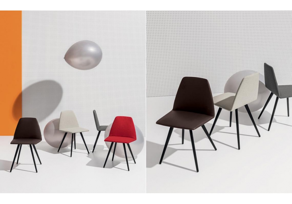 Sila Cone Shaped von Lievore Altherr Molina für Discipline entworfen, ist ein Stuhl mit Gestell aus geprägtem lackiertem Metall, Sitzschale mit Stoff- oder Lederbezug. Erhältlich in verschiedenen Ausführungen.