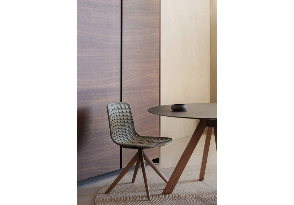 Lapala von Javier Pastor für Expormim entworfen, ist ein geflochtener Stuhl mit pyramidenförmiger Holzbasis. Verfügbar in verschiedenen Ausführungen und zwei Versionen.