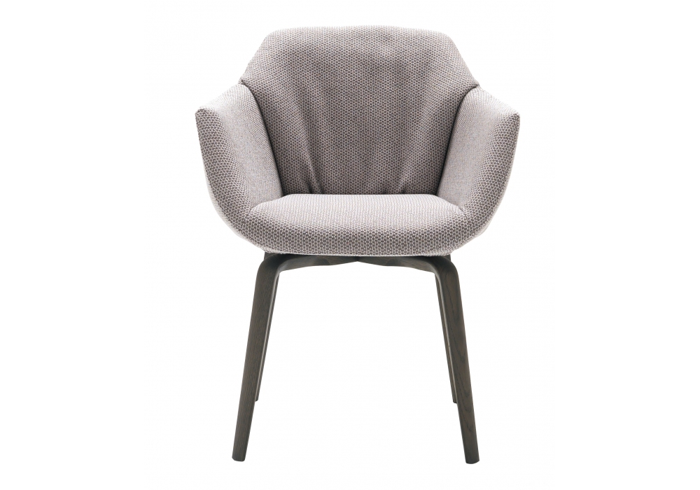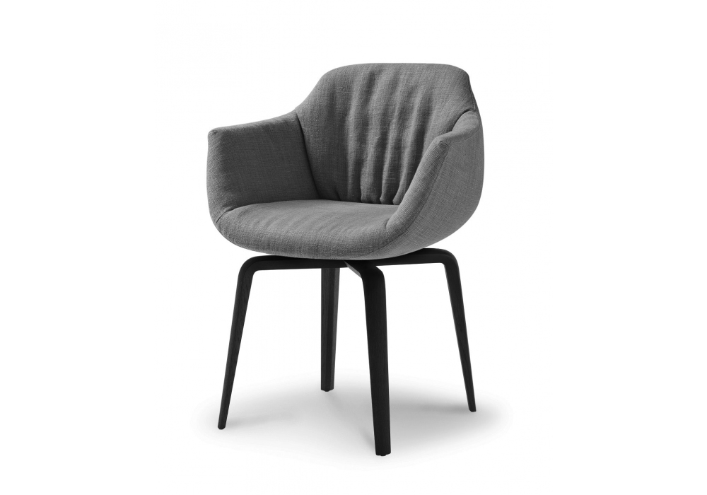 Naos von Mauro Lipparini für MisuraEmme entworfen, ist ein Stuhl mit drehbarer Basis aus lackiertem Metall Gunmetal oder einer festen Basis mit Handwerkskunst aus gebeizter massiver Eiche. Schale aus kaltgeschäumtem Polyurethan mit Stoff- oder Lederpolsterung, ausgestattet mit zylindrischen Abstandshaltern aus Edelstahl. Auf Anfrage ist es möglich, die Vorderseite des Stuhls mit einem anderen Stoff zu beziehen als die Rückseite.