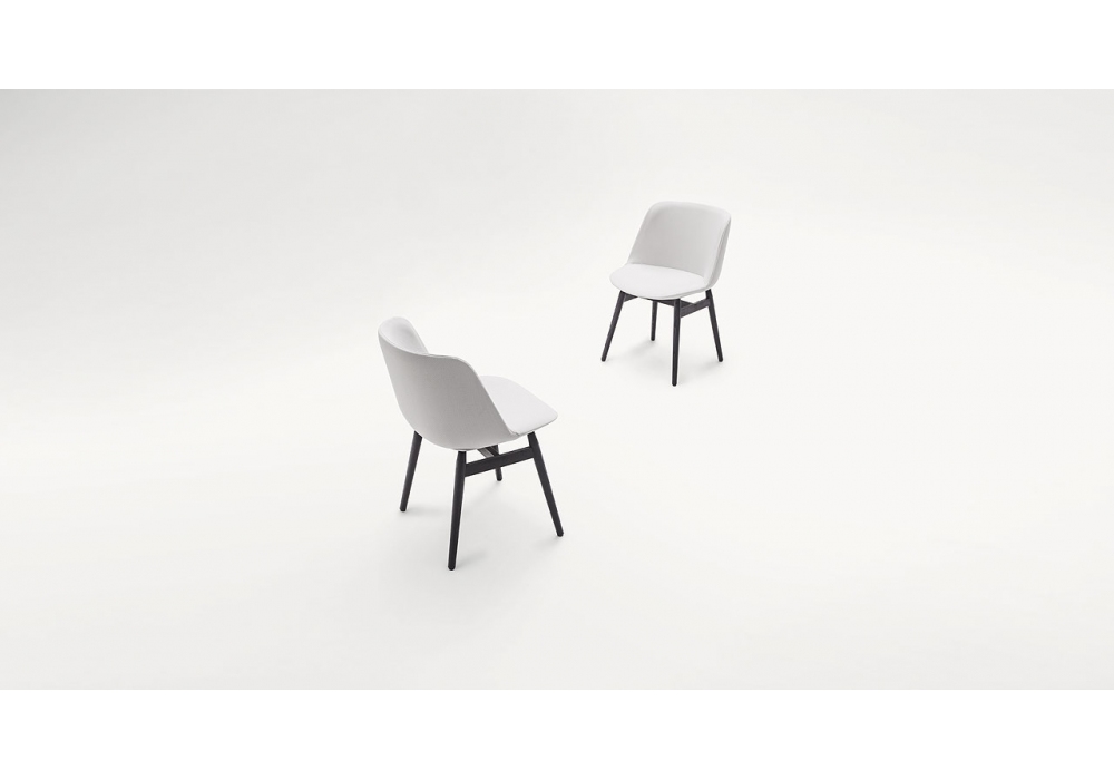 Adele, von Francesco Rota für Paola Lenti entworfen, ist ein Stuhl mit Stahlbeinen, die mit mattem oder glänzendem Eschenholz bezogen sind, Sitz und Rückenlehne mit Polyurethan bezogen und Polsterung in verschiedenen Stoffen erhältlich. Adele wird in 2 Modellen hergestellt.
