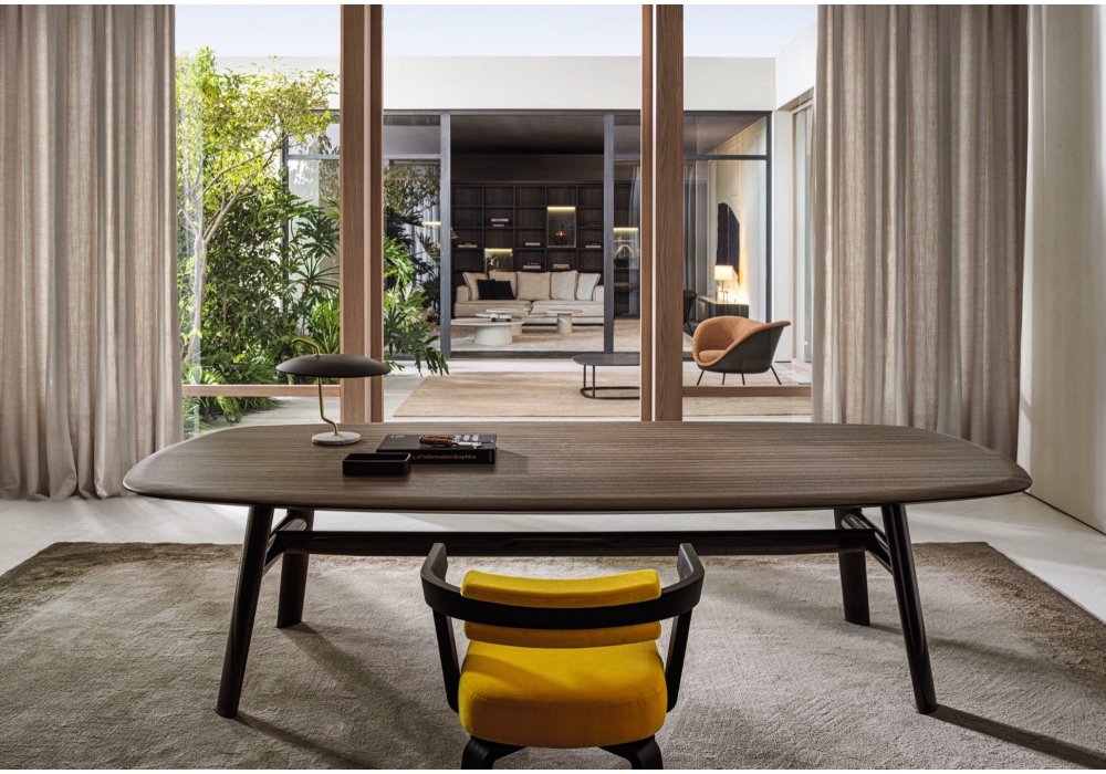 Porta Volta von Herzog & de Meuron für Molteni&C entworfen, ist ein Stuhl mit Struktur aus massiver gebeizter Esche oder Nussbaum Canaletto. Bezug aus Stoff, Leder oder Mohairsamt in Sonderedition. Optional gepolsterte Rückenlehne. Verfügbar in 2 Modellen.
