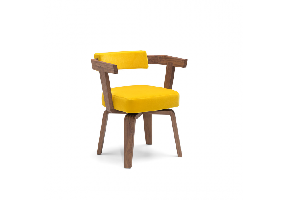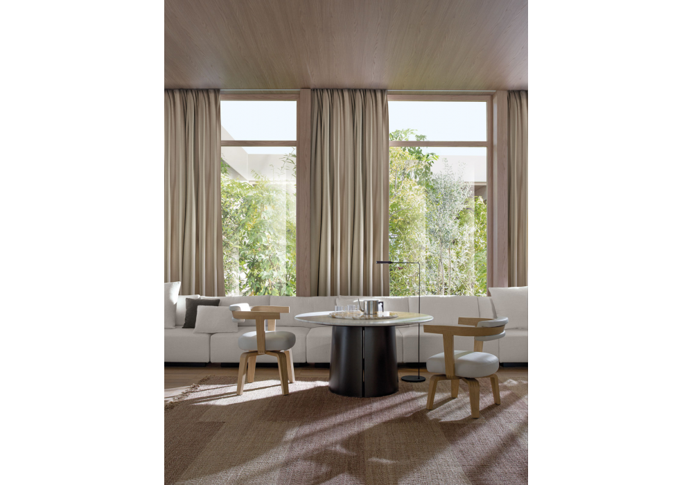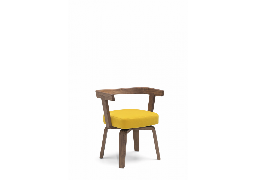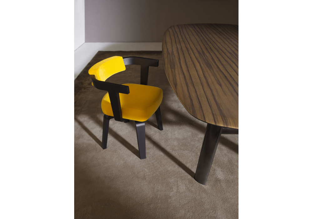 Porta Volta von Herzog & de Meuron für Molteni&C entworfen, ist ein Stuhl mit Struktur aus massiver gebeizter Esche oder Nussbaum Canaletto. Bezug aus Stoff, Leder oder Mohairsamt in Sonderedition. Optional gepolsterte Rückenlehne.