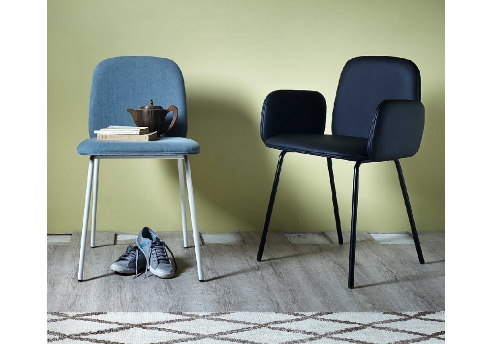 Leda von Francesco Beghetto für Miniforms entworfen, ist ein Stuhl mit Bezug aus Stoff oder Kunstleder. Metallstruktur in verschiedenen Farben erhältlich.